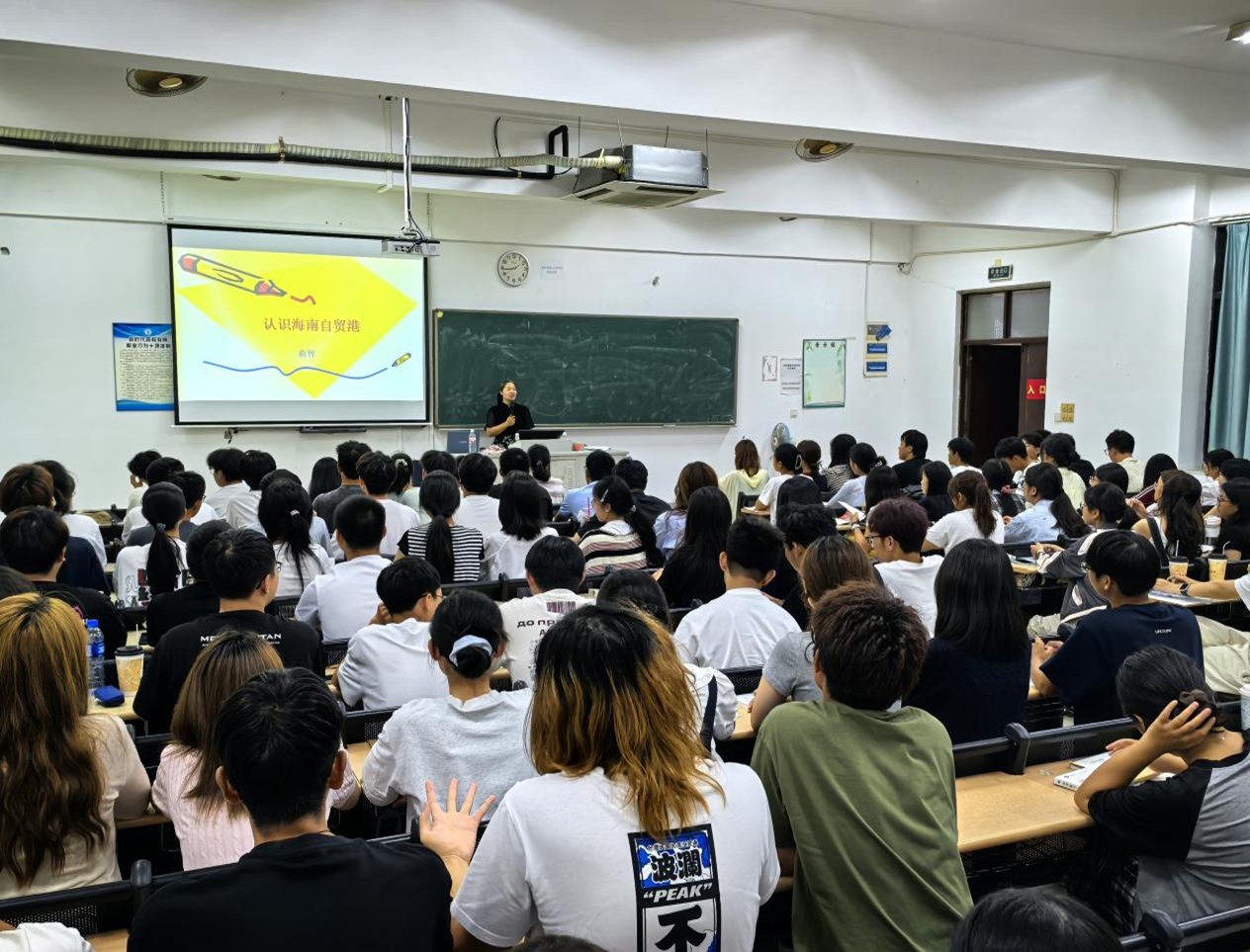 9月24日,太阳成tyc7111cc在公司三亚校区4405教室组织开展海南自由贸易港封关政策宣讲,提升广大同学对海南自贸港建设的认识和理解。宣讲会由公司副教授、博士曲智老师主讲,2025级全体同学参加。